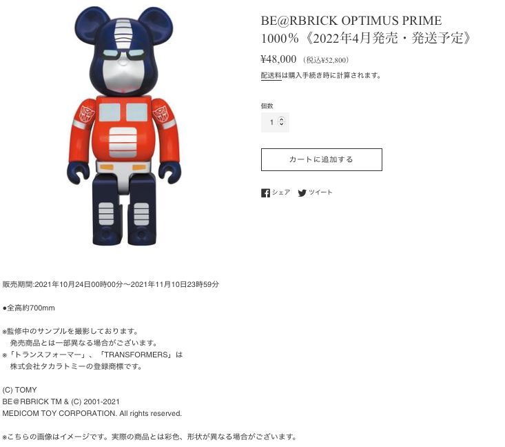 BE@RBRICK OPTIMUS PRIME 1000%《2022年4月発売・発送予定》